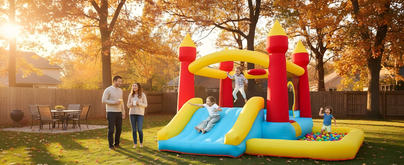 Toiyjofe Bounce House with Blower & Slide, (10FT X 10FT X 7FT) Kids Bouncy Castle for Indoor/Outdoor Play, Birthday Parties, Backyard Fun Inflatable Bounce House for Kids 3-6, Jump House for Toddlers